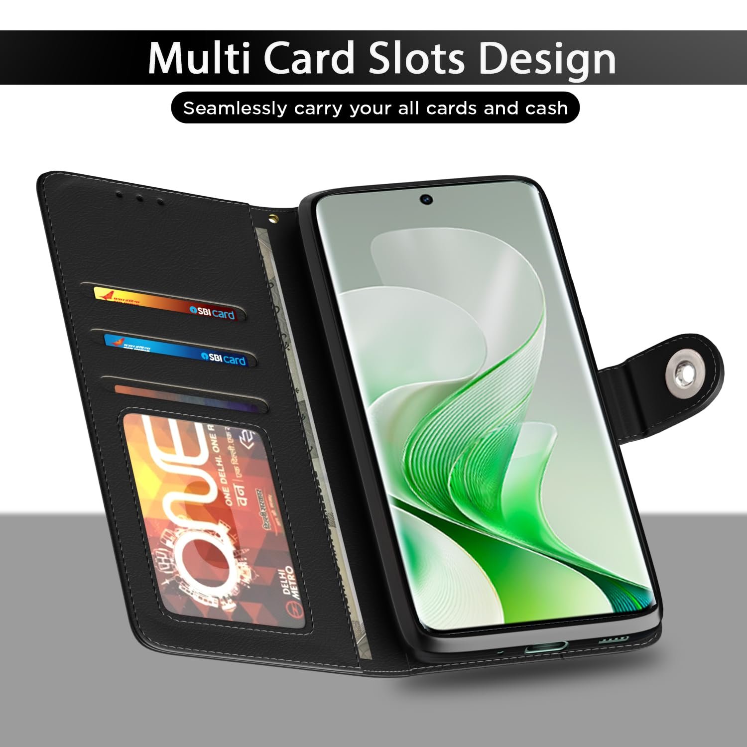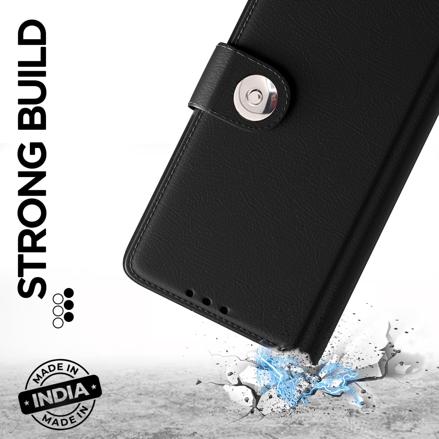 Pikkme Flip Cover Leather Finish | Inside TPU with Card Pockets | Wallet Stand and Shock Proof | Complete Protection Button Flip Case for Vivo V40e 5G / iQOO Z9s 5G(Black)