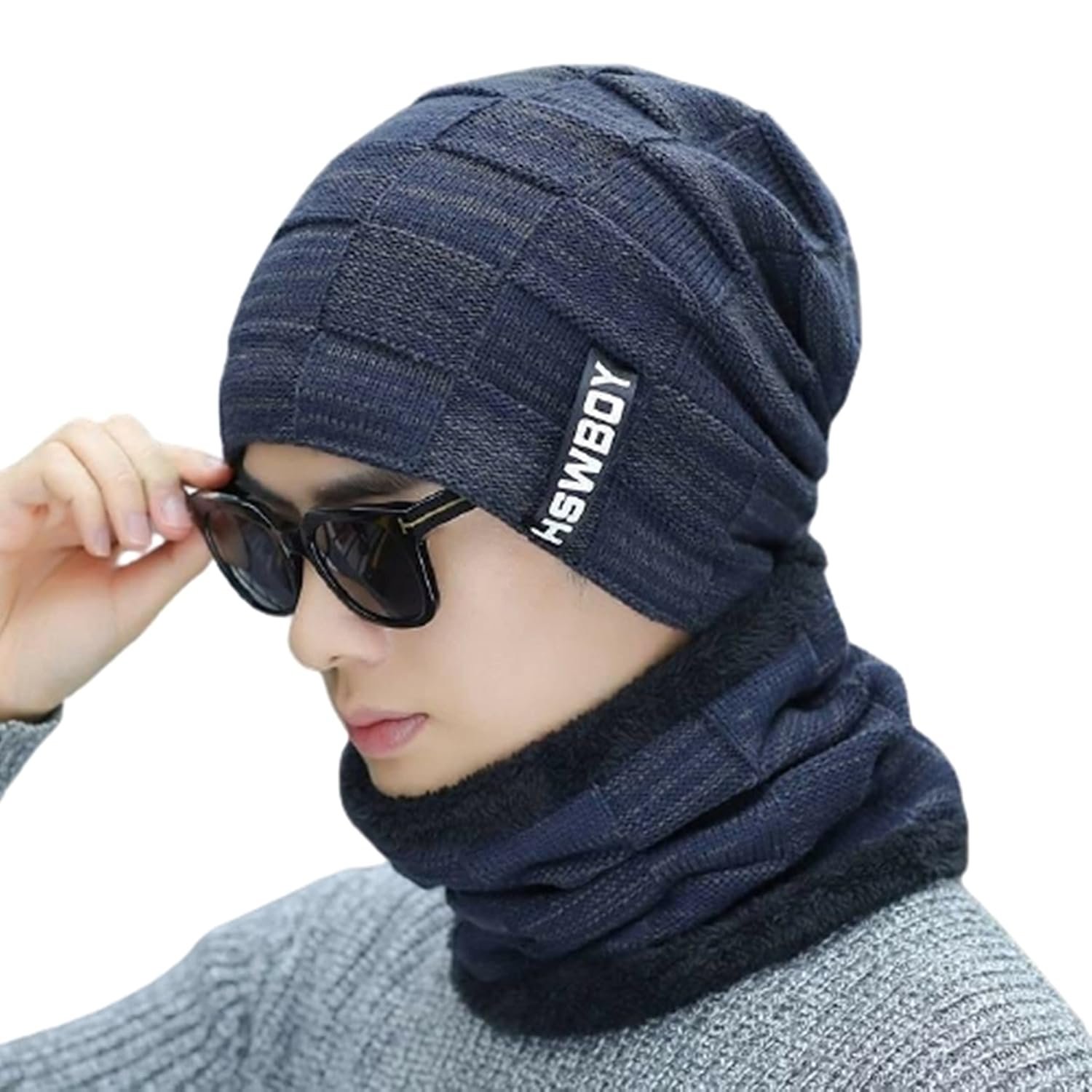 PinKit Fashionable Latest Winter Woolen caps with Scarf Set Stretch Warm Snow Proof (Fur Inside) Winter caps for Men and Women Cap