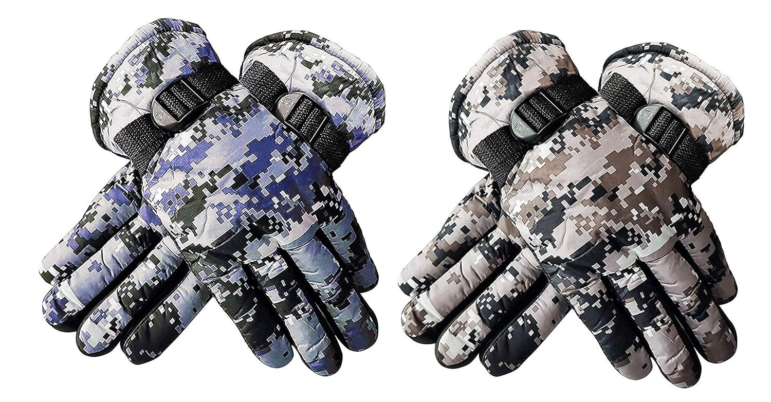 PinKit Warm Snow and Wind Proof Winter Gloves for Men Protective Warm Hand Riding, Cycling, Bike Motorcycle Gloves – 2 Pair