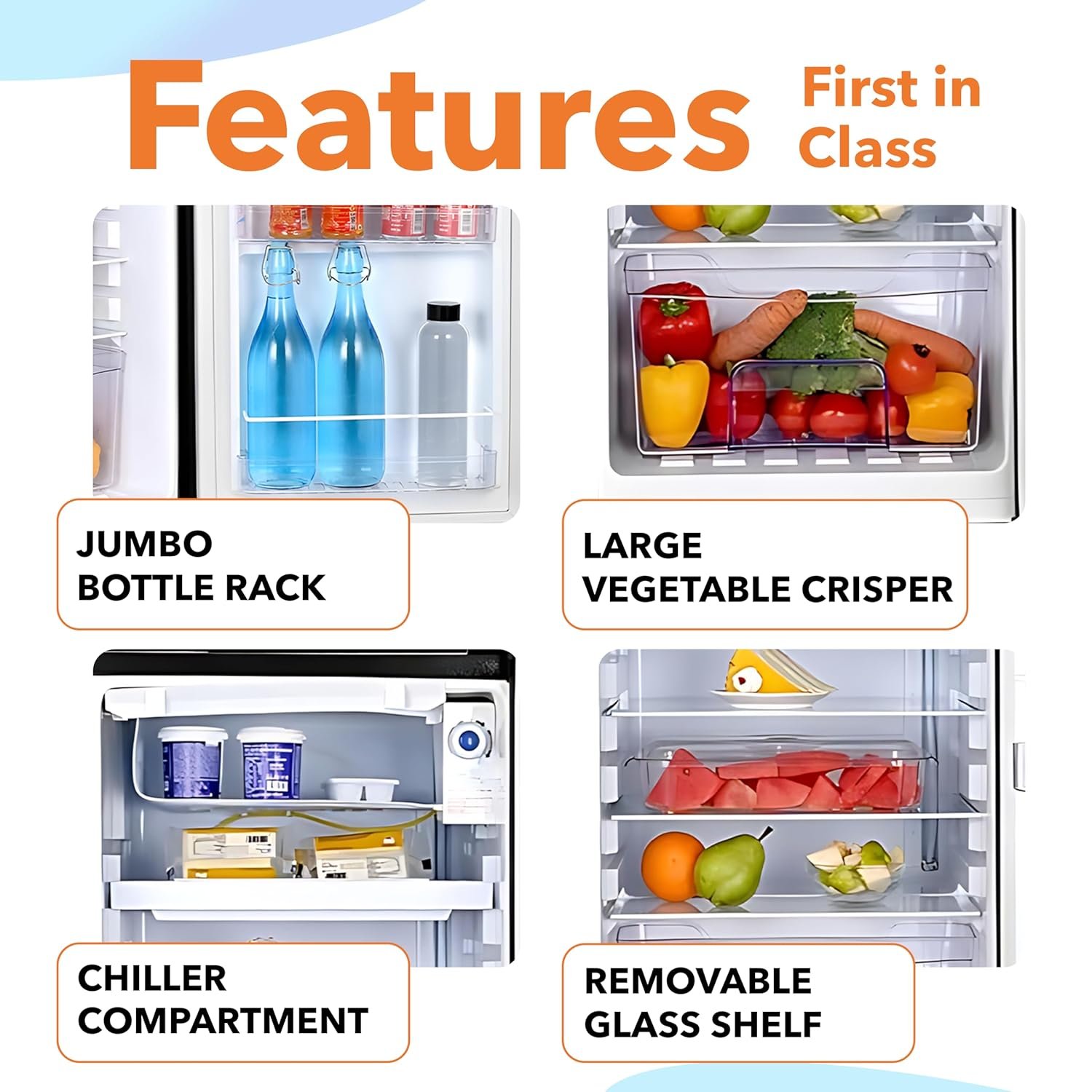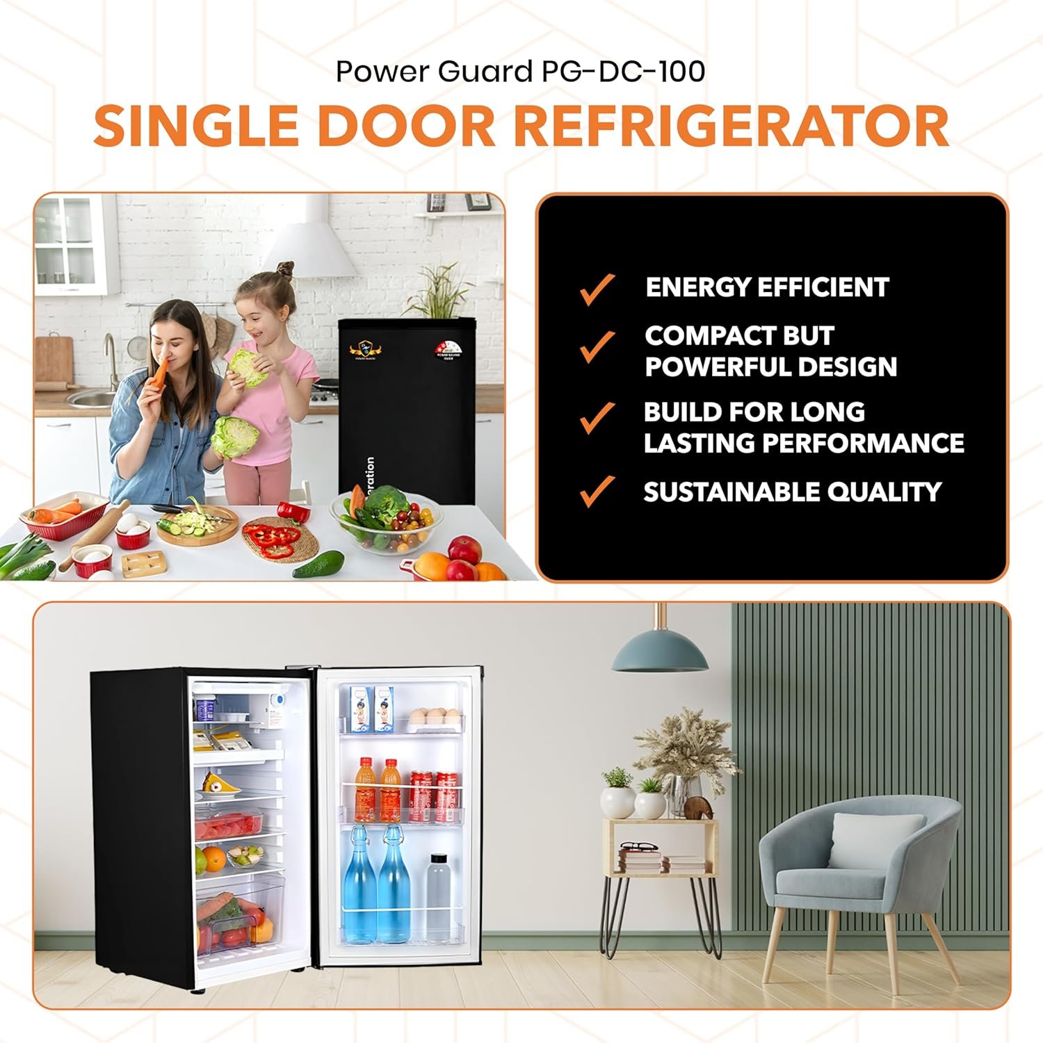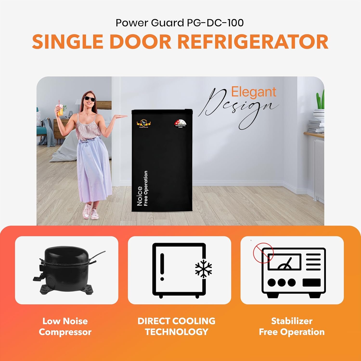 Power Guard Mini Fridge with Direct Cooling Technology | Ideal for Home, Office, Dorm Room | Personal Minibar | Compact Size | Black (91 Liters)