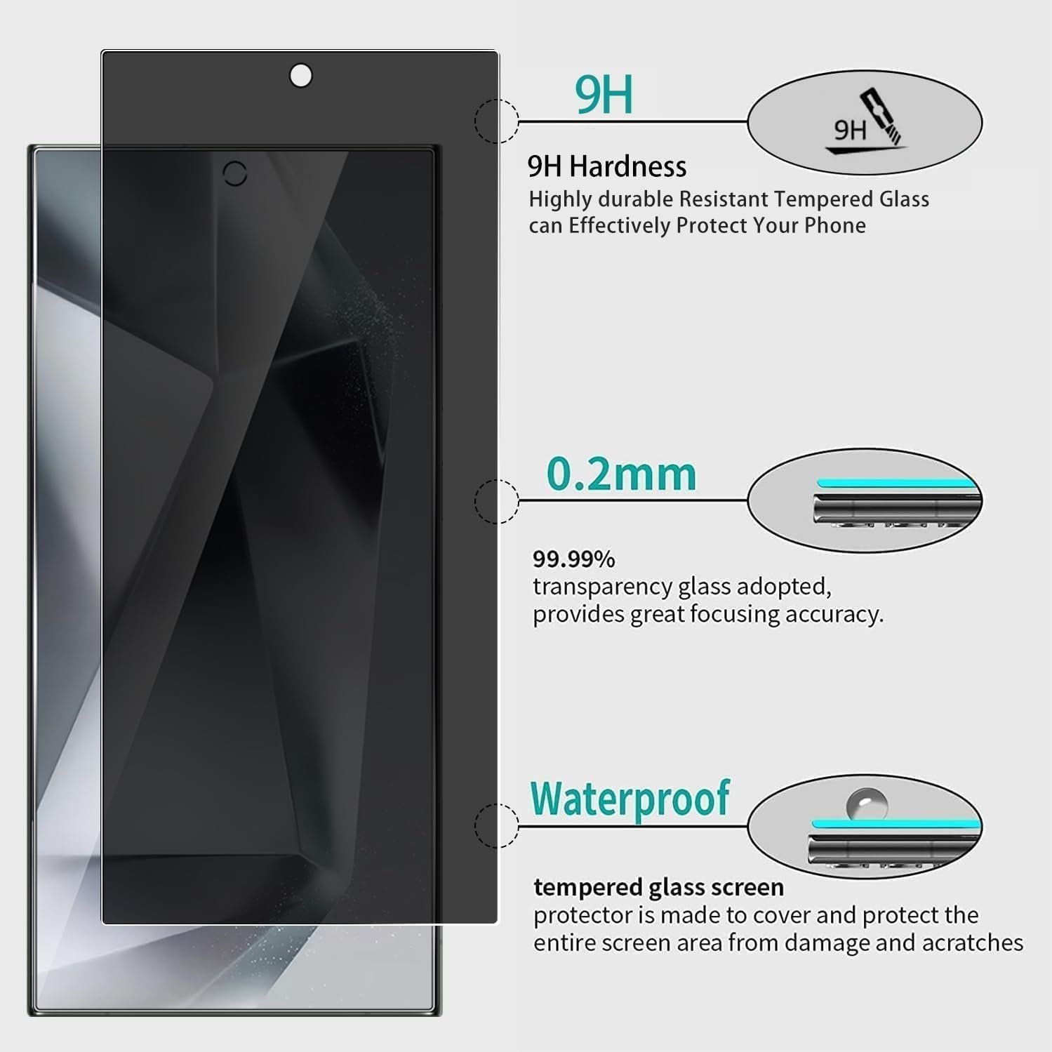 Premium Privacy Tempered Glass Screen Protector for Samsung Galaxy S24 Ultra 5G (6.8 Inch, Pack of 1) Full Edge to Edge Coverage Anti-Spy/Anti-Peeping 9H Hardness with Installation Kit