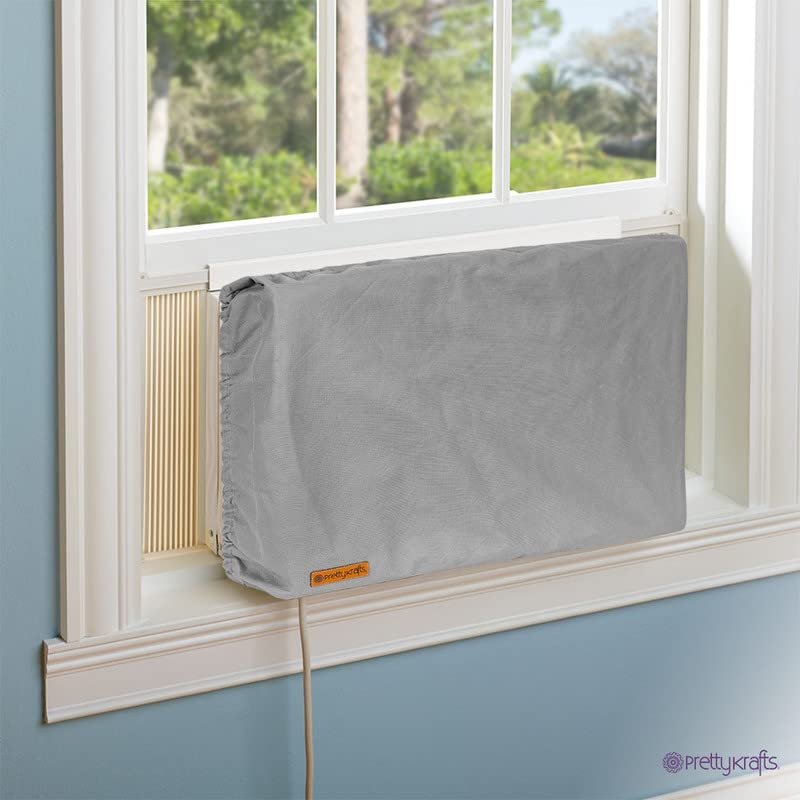 PrettyKrafts Window Air Conditioner Cover, Outdoor, Outside Window AC Unit Cover, Dust-Proof, Waterproof AC Cover, Outdoor Window AC Protection Cover with Drawstring, Set of 1, Grey