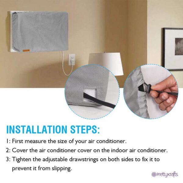 {EASY TO INSTALL} No more installation tools required. Simply put the covers over the inside of air conditioner and tighten the drawstring on each side. Make sure they fits well for the AC. Easy to wash and maintenance.