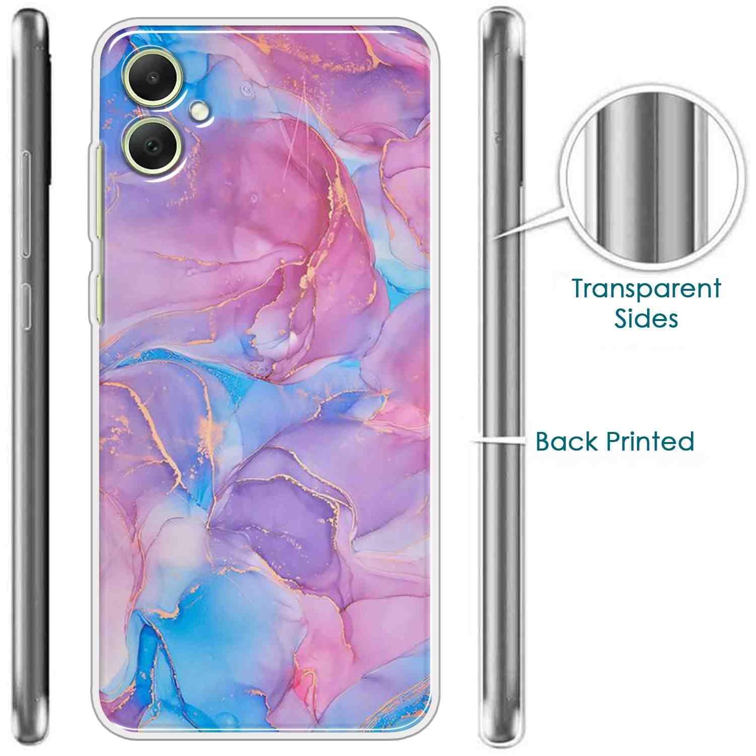 Printed Designer Back Cover for Samsung Galaxy A05 / F05 / M05 Back Cover Case – Pink and Blue Golden Wavy Marble D16289_66874