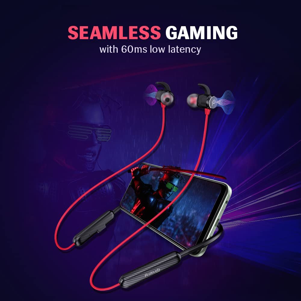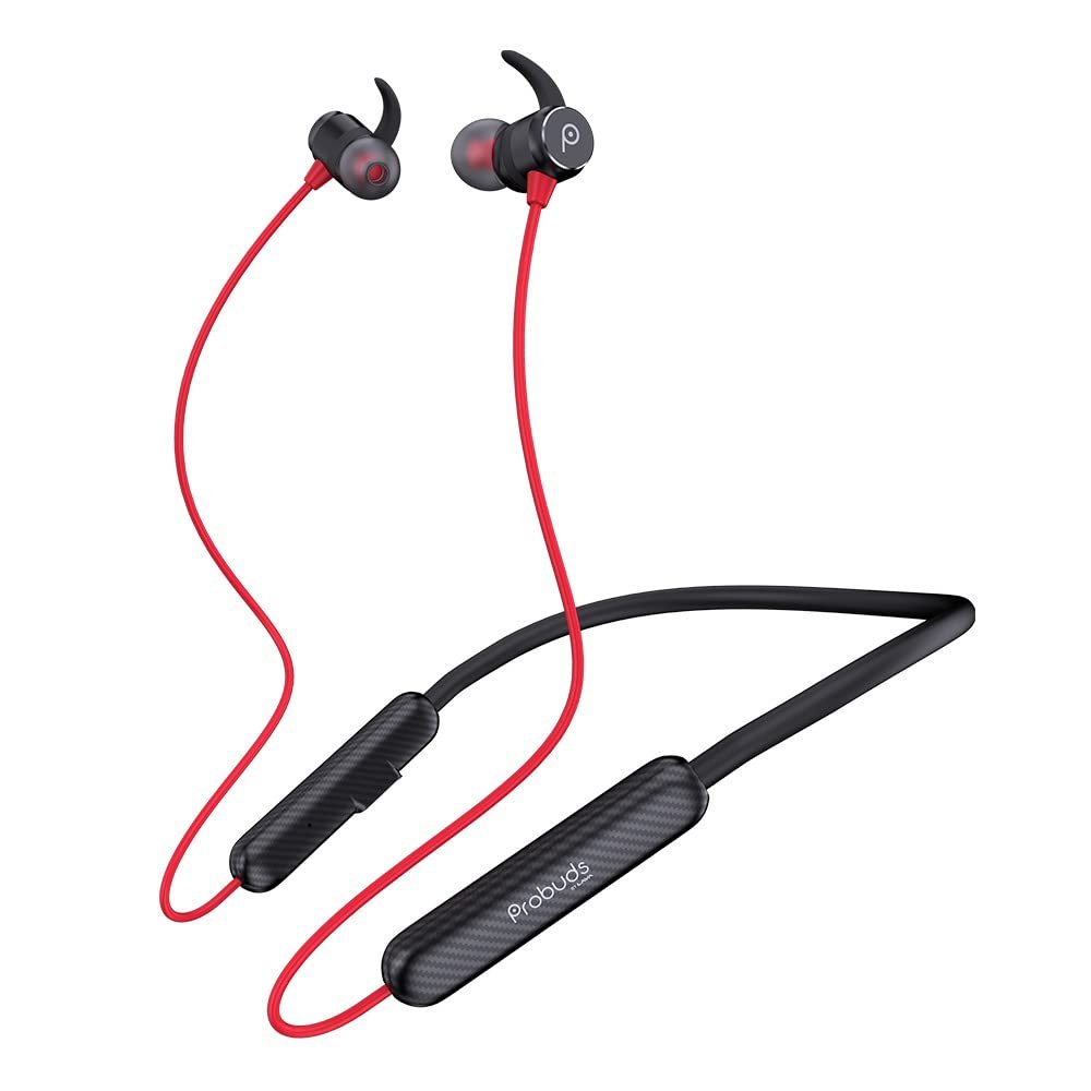 Probuds N31 Wireless Bluetooth Neckband (with Mic) | 45+ hrs Playtime | ENC | 12 hrs Fast Charge in 10 mins | Water Resistant (IPX6) | BT V5.3 | 60 ms Low Latency | Dual Device Pairing (Wild Red)