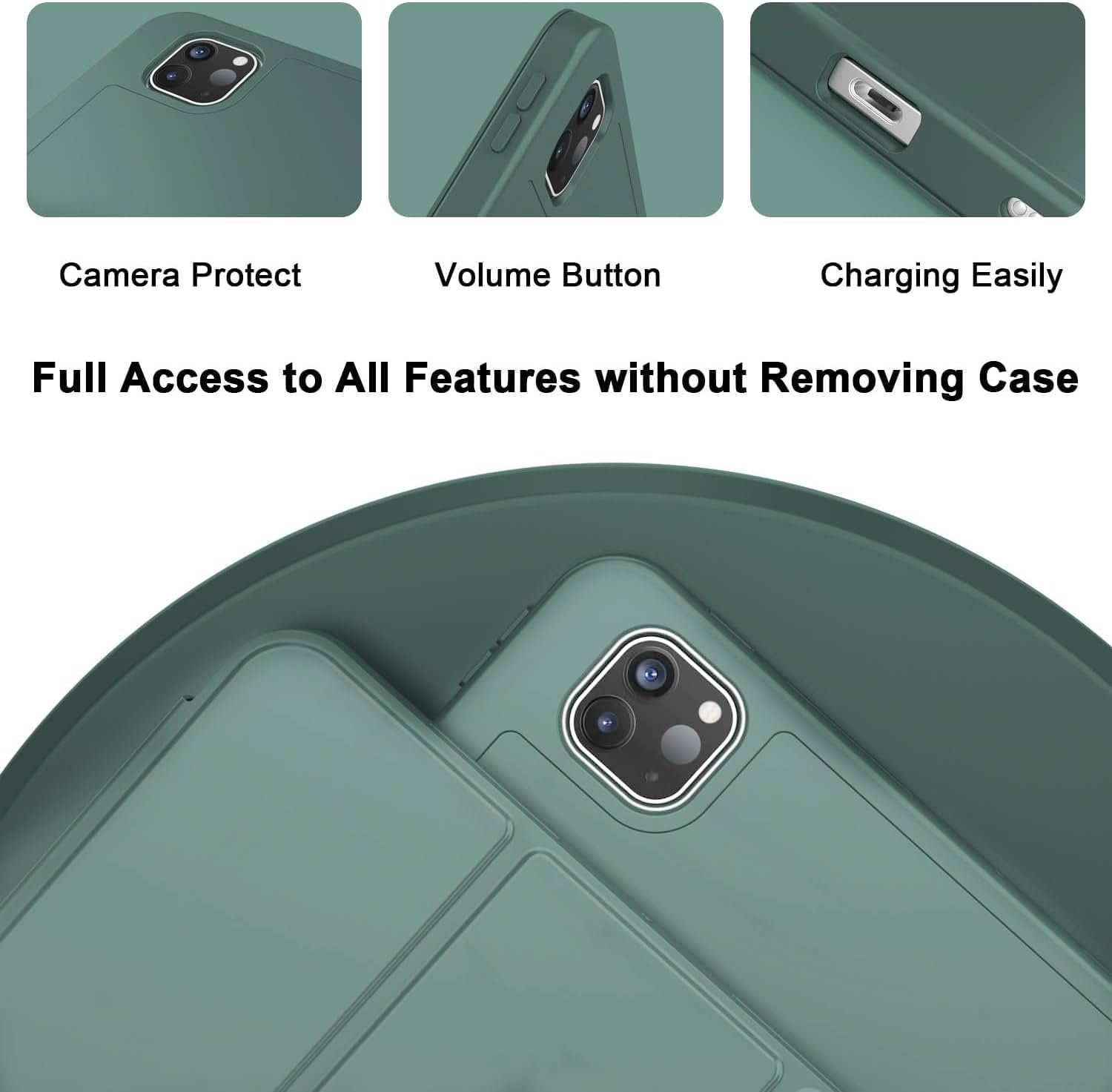 ProElite Case Cover for Apple iPad Pro 13 inch 2024 Cover, Pencil Case for iPad Pro 13 M4 2024 with Pencil Holder [Soft Flexible Case] Recoil Series – Dark Green
