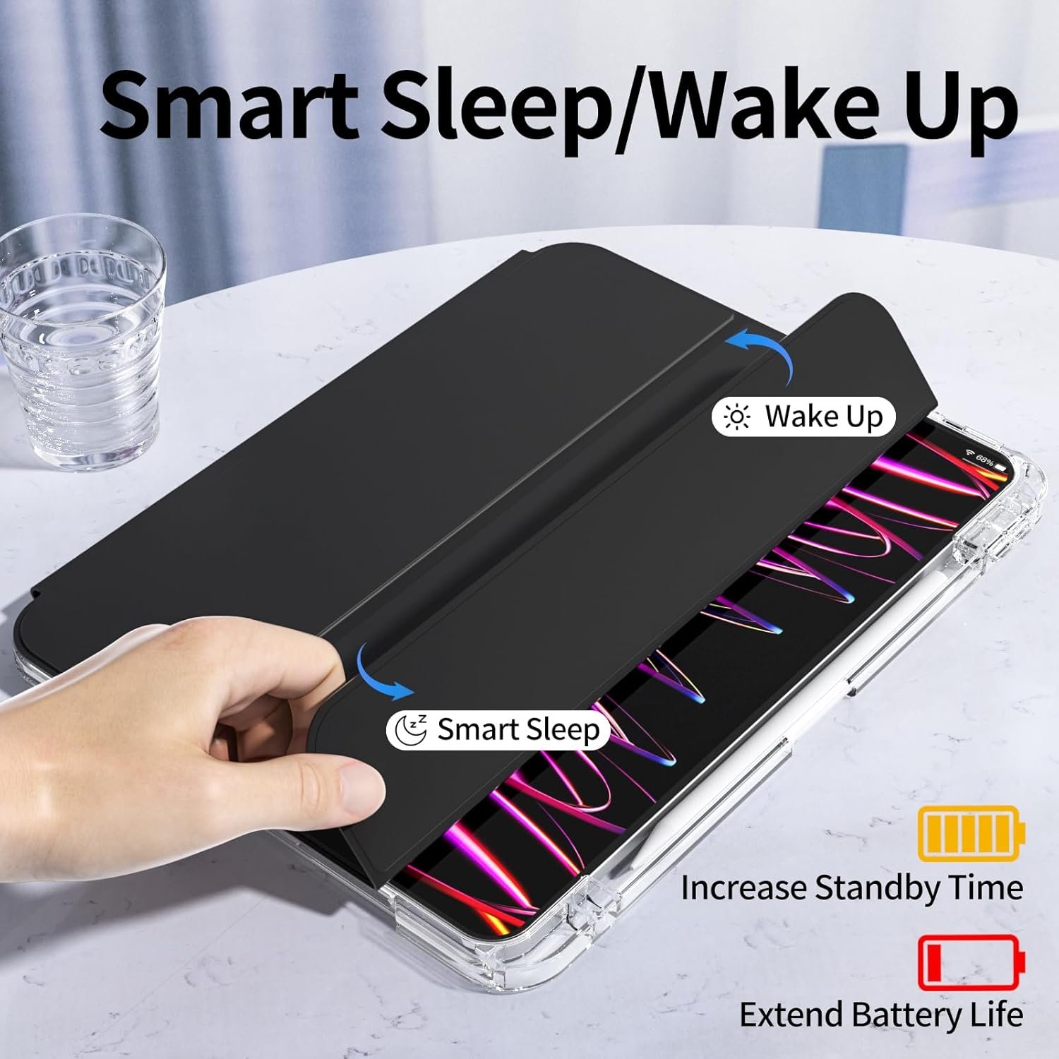 RELIABLE AUTO SLEEP/WAKE – Works seamlessly with your iPad’s auto sleep/wake function and also allows to adjust different angles for better viewing or typing with built in Apple pencil holder Supports 2nd gen apple pencil charging.