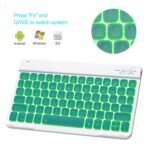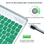 ✔【Detachable Wireless Keyboard with Rainbow Backlit】7 colors rainbow back-light make typing fun and easy in the dark/night, you can change the colors on keyboard’s left, middle and right seperatly. The Bluetooth connection is stable and mechanical scissor keys are quiet with rebound feature. With the U.S Chipset, helping you to type stable and fast. Rechargeable battery make keyboard can work wireless for longer time, provide the freedom to read or work anywhere at any time