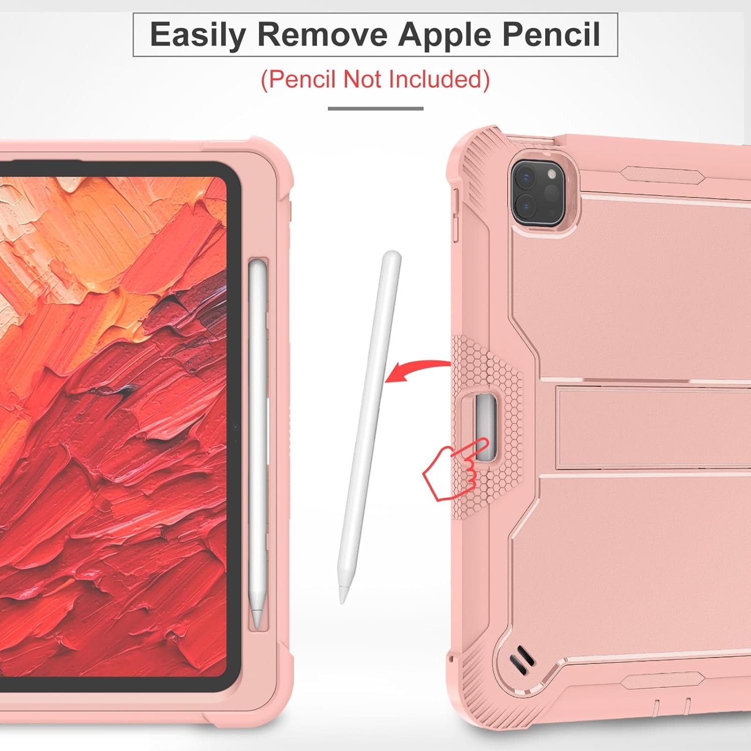 ProElite Rugged Shockproof Heavy Duty Back Case Cover for Apple iPad Pro 11 inch M4 2024 with Apple Pencil Holder, Rose Gold