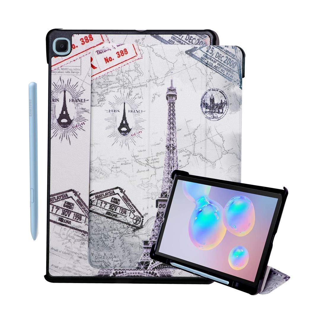 ProElite Smart Flip case Cover for Samsung Galaxy Tab S6 Lite 10.4 Inch 2024 SM-P610/P615 with S Pen Holder (Also Supports S Pen Magnetic Attachment), Eiffel