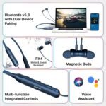 pTron Tangent Evolve w/ 50Hrs Playtime, HD Mic, Pristine Sound, 14mm Drivers, Bluetooth V5.3 w/Dual-Device Pairing Wireless Neckband, Magnetic Buds, Voice Assistant, Type-C Charging & IPX4 (Blue)
