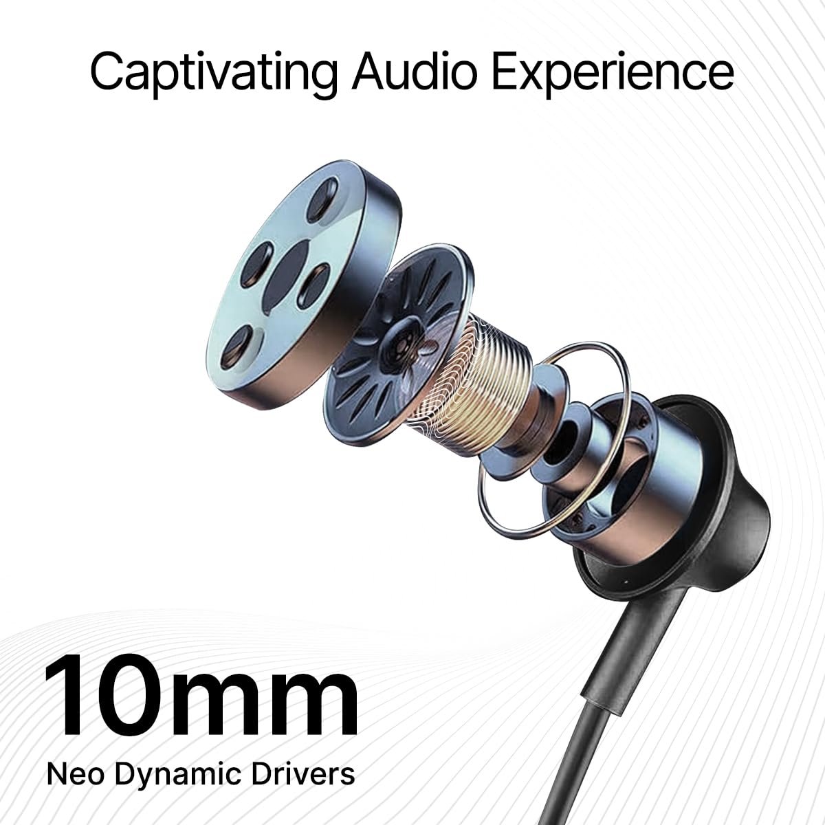 Lightweight In-Ear Wireless Neckband with 18 Hours of Playback-time on a single charge & Built-in HD Mic for Clear Call Quality.