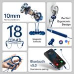 pTron Tangentbeat in Ear Bluetooth Wireless Headphones with Mic, Punchy Bass, 10mm Drivers, Clear Calls, Dual Pairing, Fast Charging, Magnetic Buds, Voice Assist & IPX4 Wireless Neckband (Dark Blue)