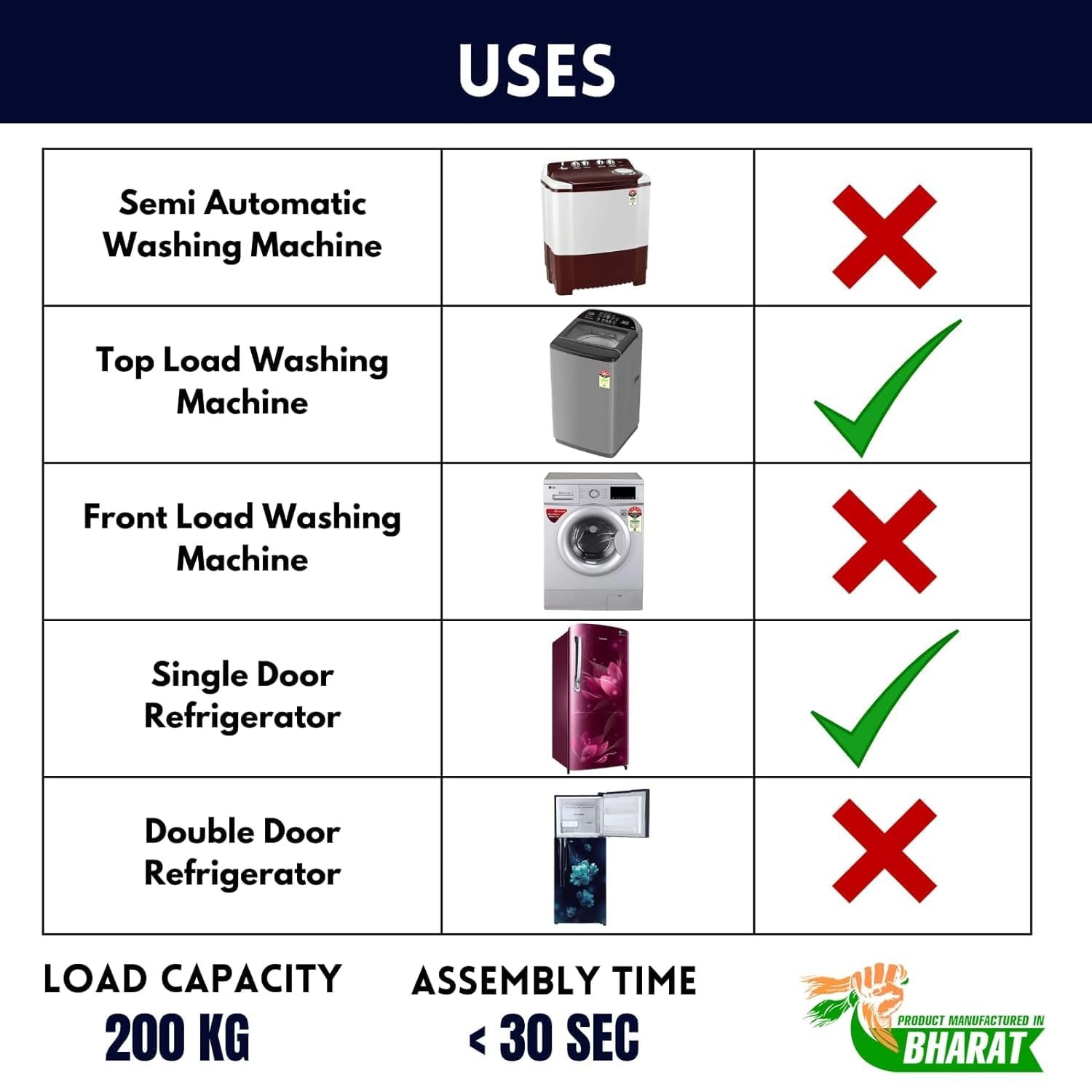✅ Versatile Stand with 1 Year Warranty: Suitable for Top Load washing machine of All Sizes & All Brands of Refrigerators(50 Litres – 500 Litres), and Dishwashers of all sizes (washing machine stand)