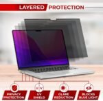ANTI GLARE – Our advanced PxIn multi-layered film filter blacks out your screen when viewing from the side, while maintaining a crystal clear screen straight-on. It also protects your eyes from harmful glare, UV, and blue light.