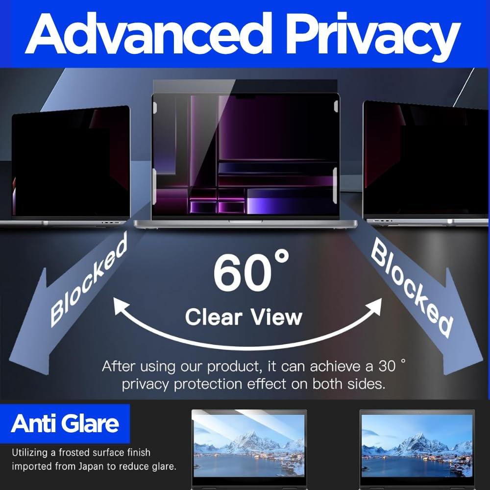 High-Quality Privacy Screen Protector: Crafted with premium, scratch-resistant screen protector for unmatched durability. It provides excellent protection against scratches, bumps, and drops. Equipped with blue light filter, anti-glare matte coating, and UV protection to prevent digital eye strain, dry eyes, and long-term screen damage.