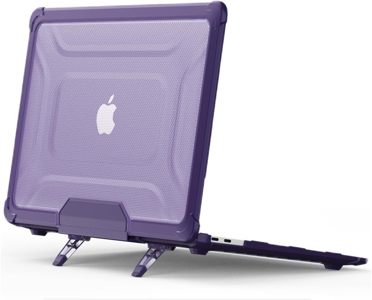 RAYA Rugged Armor Case Cover for MacBook Air 13 (2025/2024) [A3240 M4/ A3113 M3/ A2681 M2] Shock-Absorbing Protection Case with Folding Stand for MacBook Air 13.6 inch (Purple)