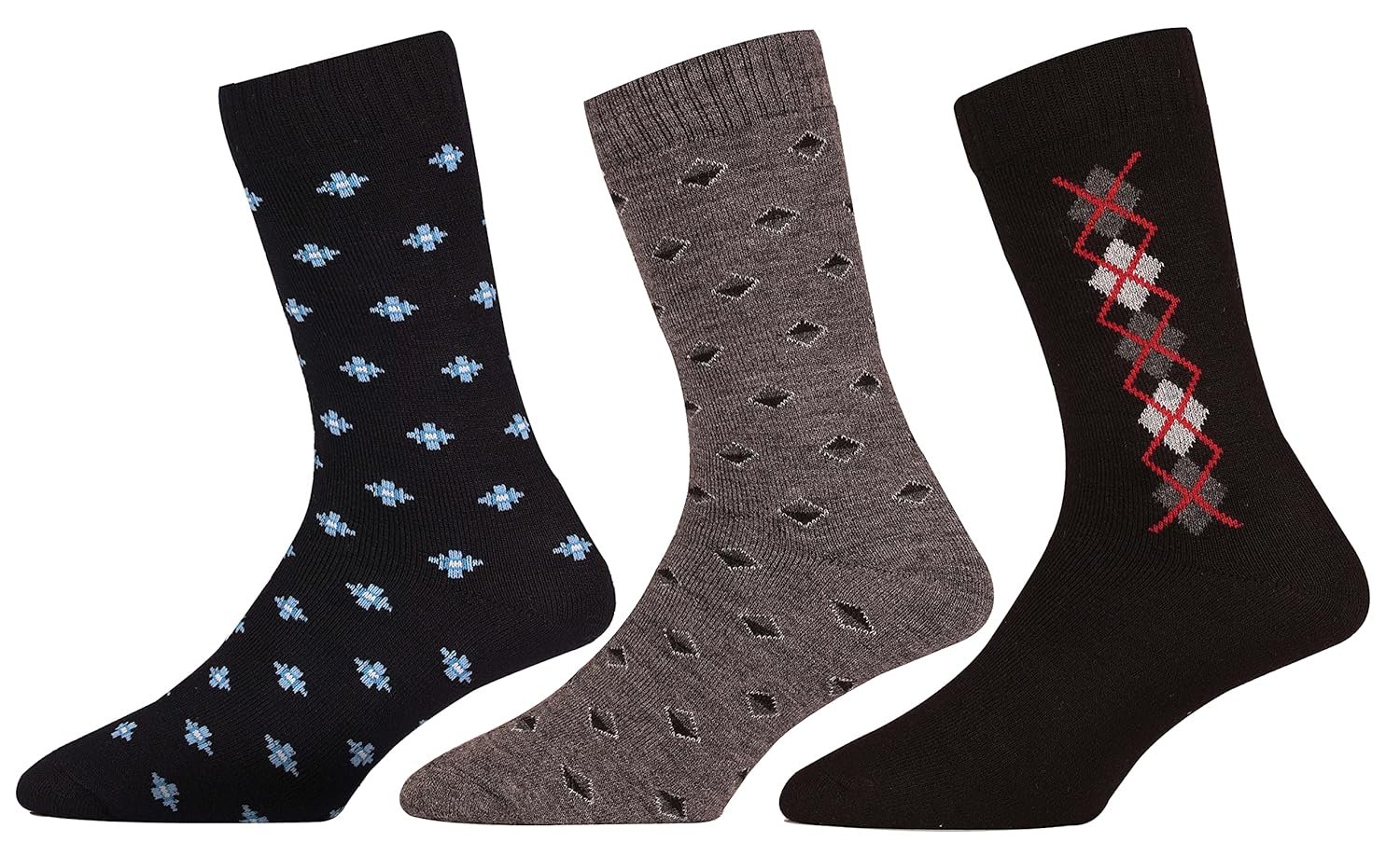RC. ROYAL CLASS Men’s Woolen Calf Length Thick Towel Multicolored Thermal Socks(Pack of 3 Pairs)(Warm Winter wear socks)