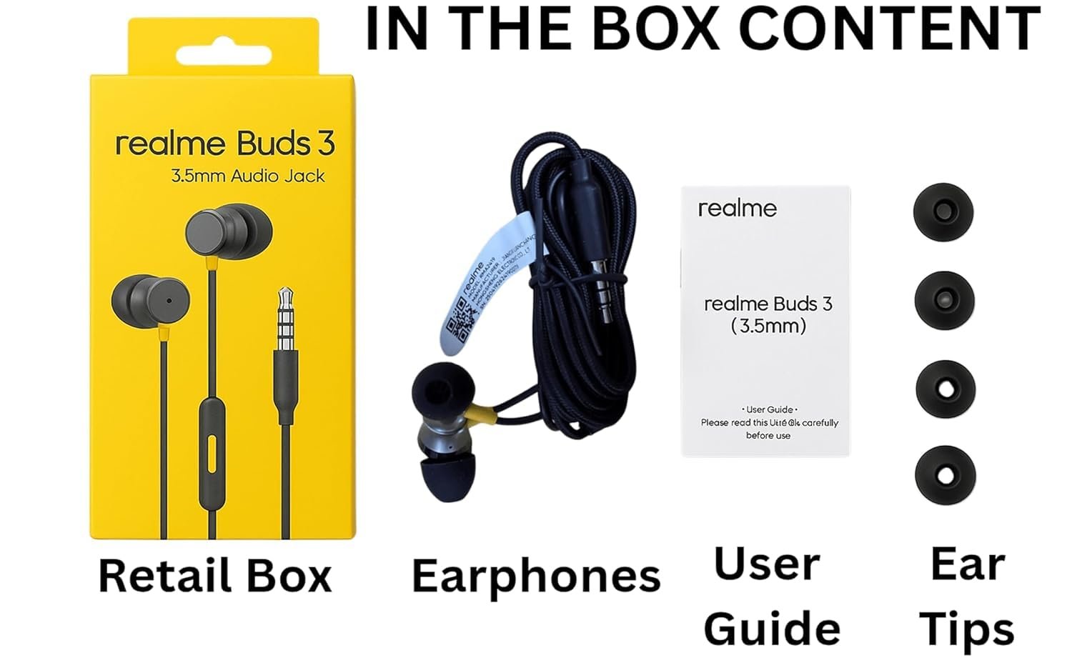 realme Buds 3 Wired Earphones with Mic (Black) | 9mm Dynamic Driver | 3.5mm Jack | Single Button Control | Braided Tangle-Free Cable | Model RMA2419 (Buds 3 3.5mm Wired Earphone, Color Black)