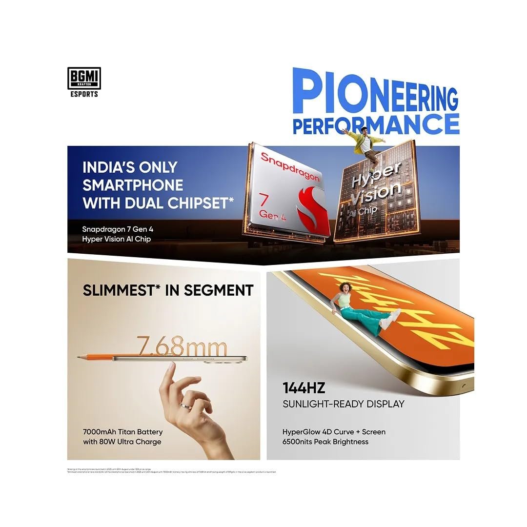 Snapdragon 7 Gen 4 Chipset for Lag-Free Performance:Powered by the Snapdragon 7 Gen 4 Chipset, it handles multitasking (work apps + social media), heavy apps, and 4K streaming effortlessly, keeping up with India’s busy daily rhythms.