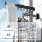 Laundry rack wall mount non-corroding and rust-proof aluminum allows indoor and outdoor use. Foldable design for easy storage and space saving. Stretch to hang clothes or any item, fold to save space collapsible design for stretching & folding.