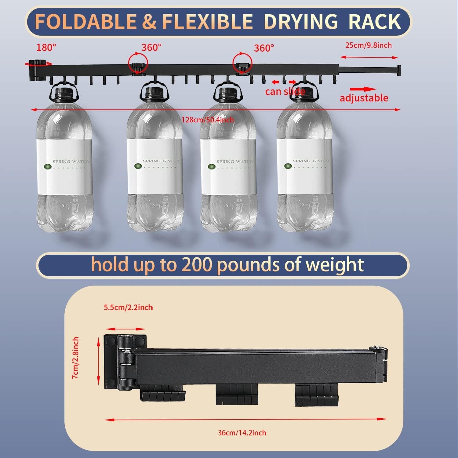 The three-fold retractable clothes drying rack is made of high-quality space aluminum, which is anti-corrosion, rust-proof and durable, and the maximum load-bearing capacity is not less than 200 pounds.