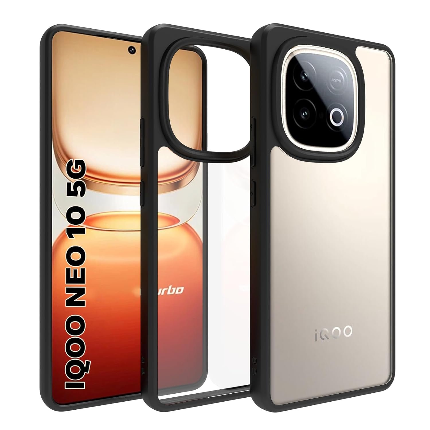 RIGGEAR Shockproof Sleek Hybrid Armor Back Cover Case for iQOO Neo 10 5G (Clear PC and Black TPU Bumper)