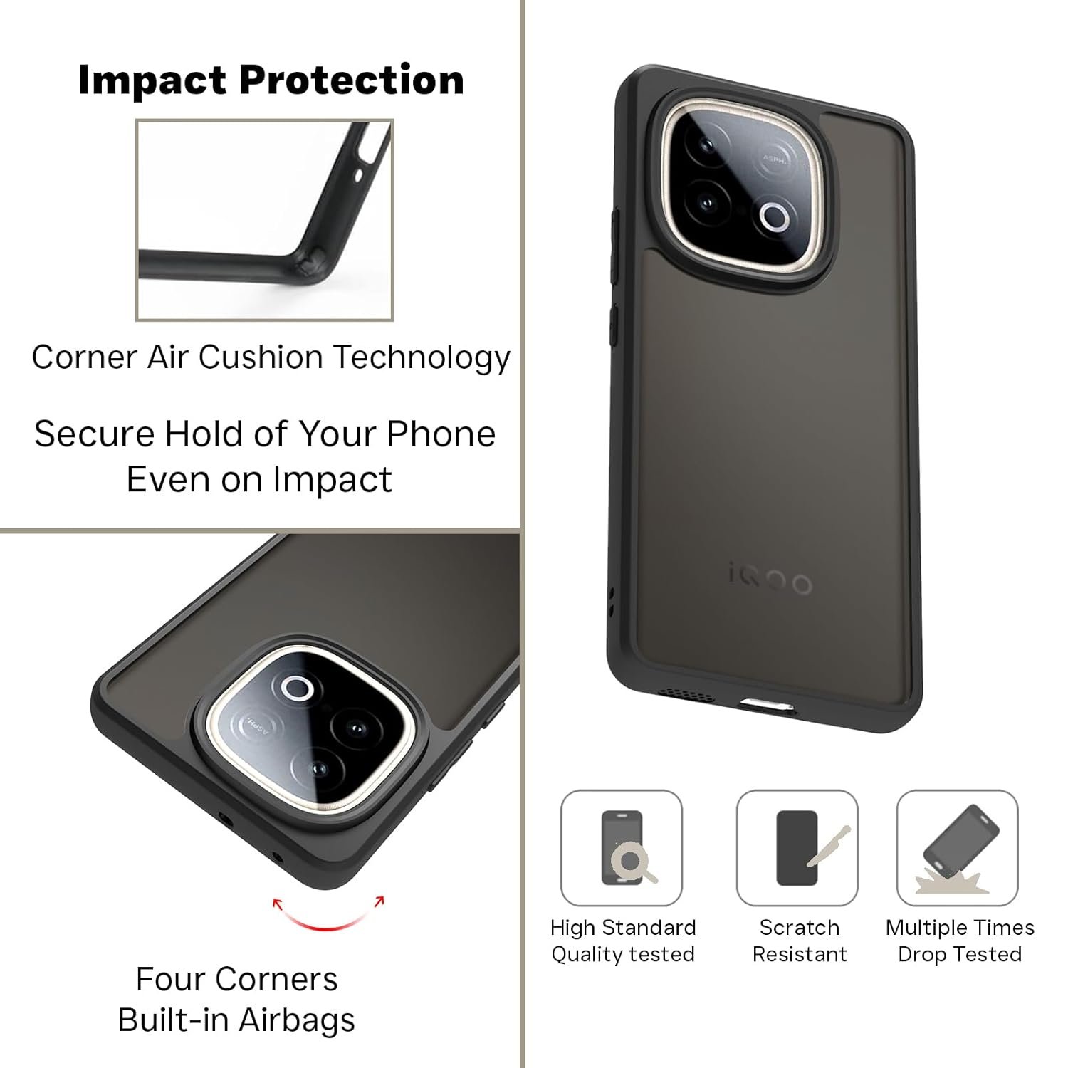 RIGGEAR Shockproof Sleek Hybrid Armor Smoke Black Matte Back Cover Case for Iqoo neo 10 5G