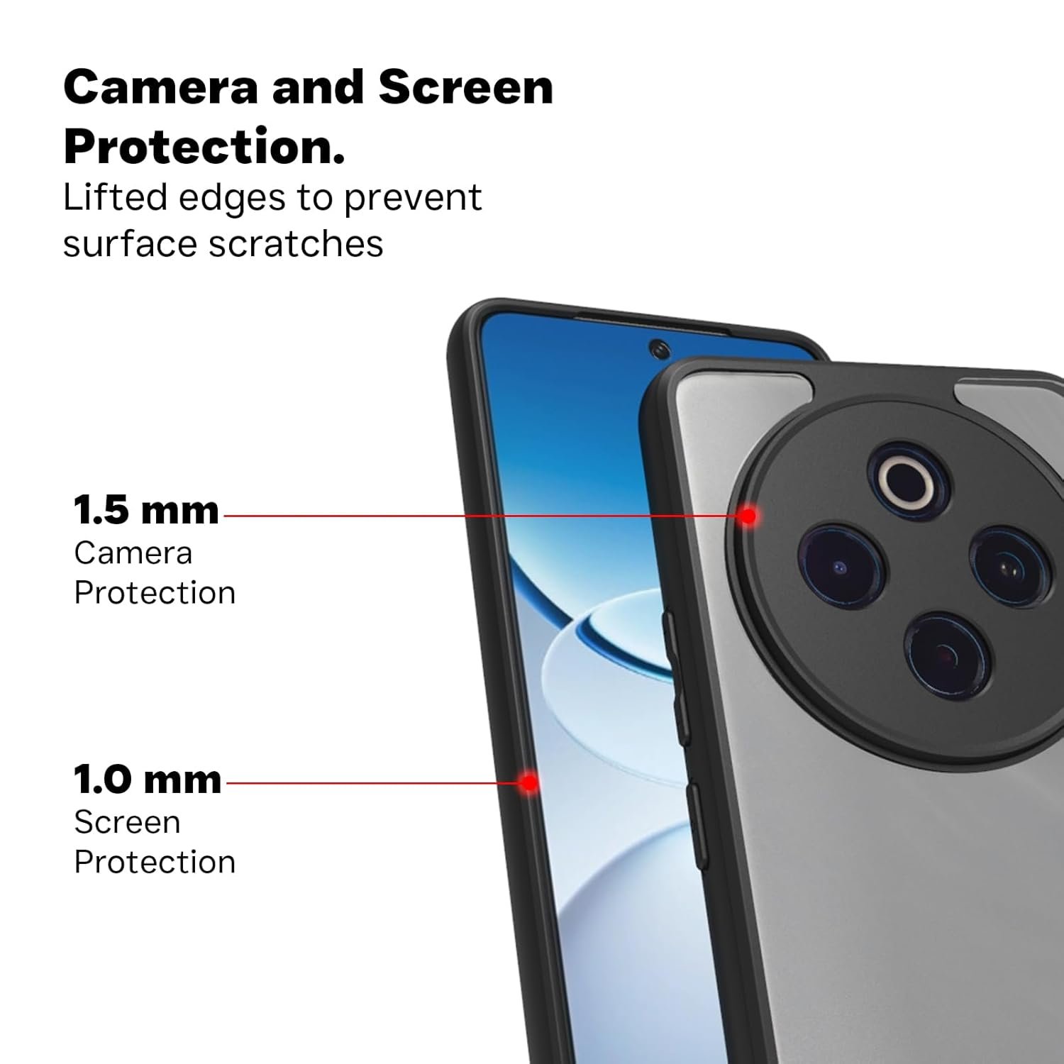With 1mm Raised camera edges, 1.5mm back panel and 2mm Bezel, the case provides complete protection to the phone and its camera.