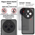 RIGGEAR Shockproof Sleek Hybrid Armor Back Cover Case for iQOO Z10 5G / VIVO T4 5G (Smoke Black Matte PC with Black TPU Bumper)