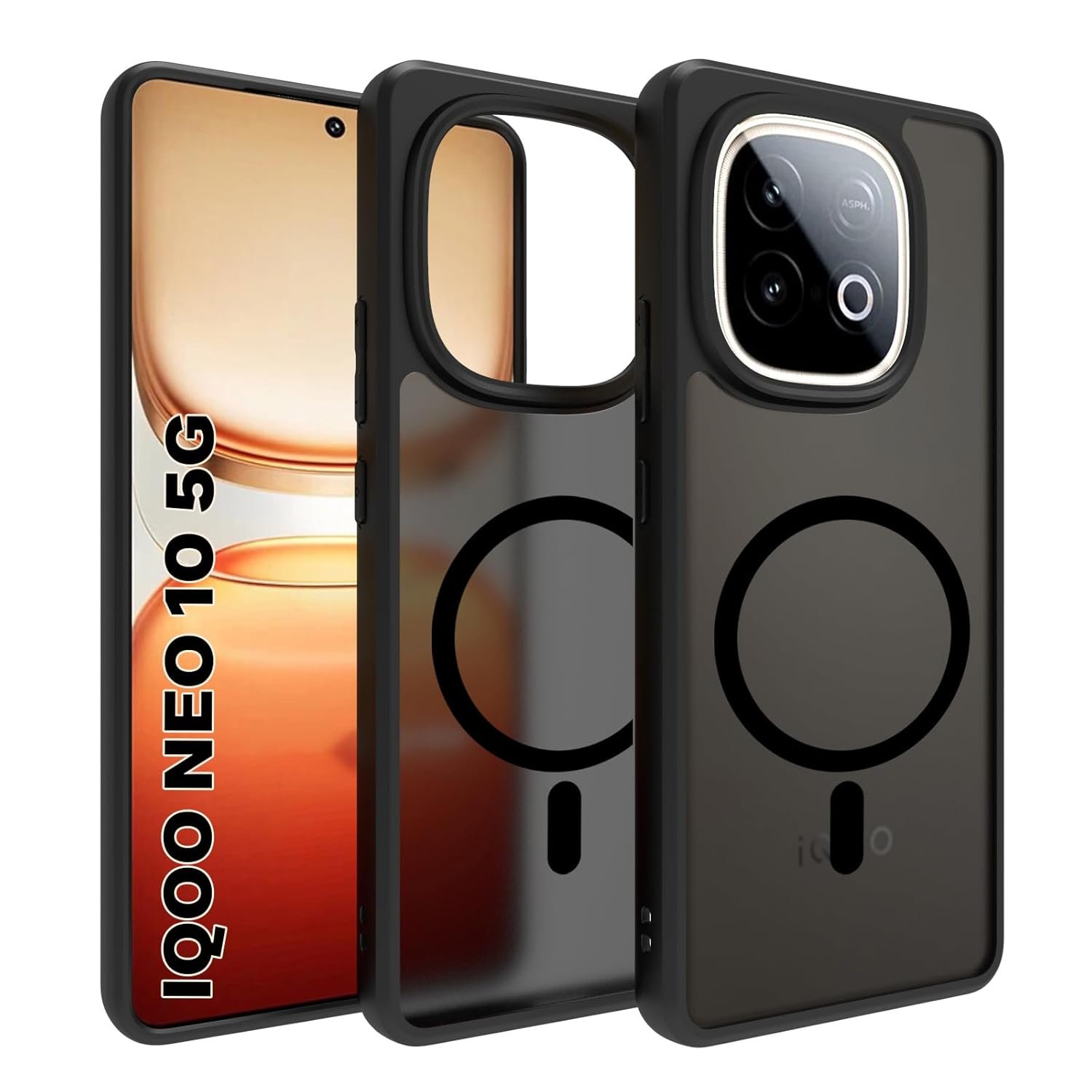 RIGGEAR Shockproof Sleek Hybrid Armor Smoke Black Matte Back Cover Case Compatible with Magsafe Accessories for IQOO NEO 10 5G
