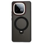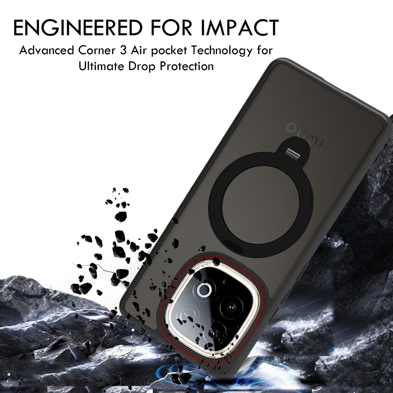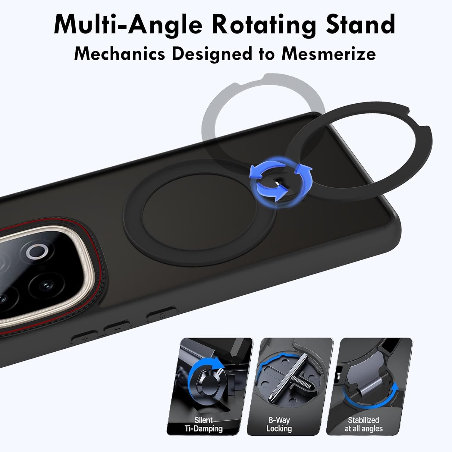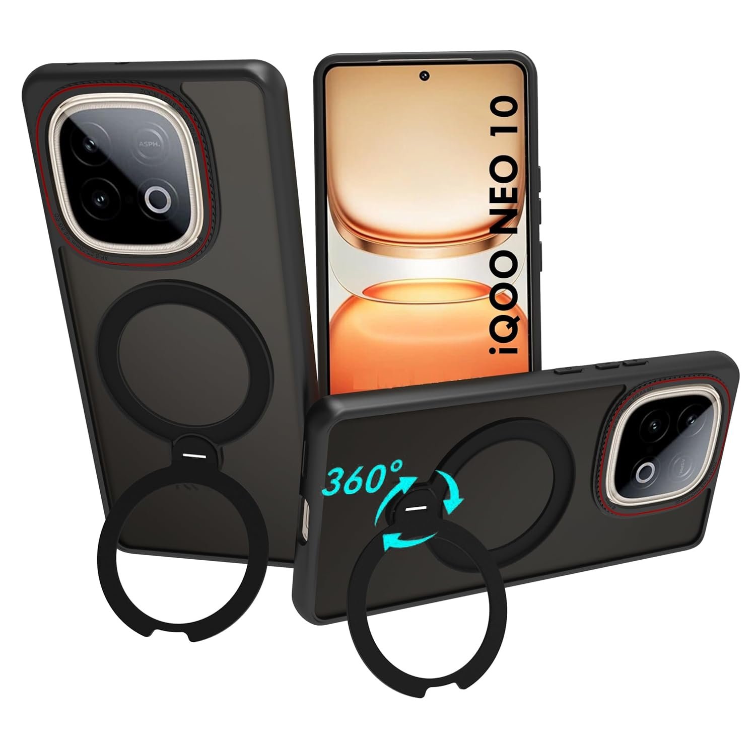 RIGGEAR Shockproof Tough Hybrid Armor 360° Rotating Magnetic Ring Stand Back Cover Case Compatible with MagSafe Accessories for iQOO Neo 10 5G (Smoke Black Matte PC and Black TPU Bumper)
