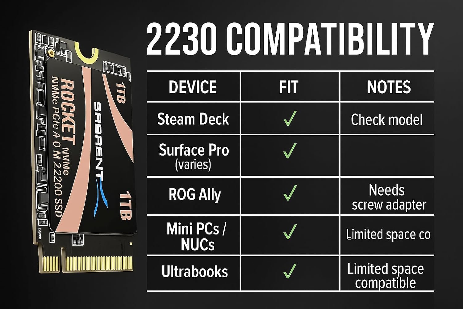 The Rocket Q4 2230 fits just about anywhere. Need to upgrade your Steam Deck, Microsoft Surface, or other device where space is limited? We have you covered.