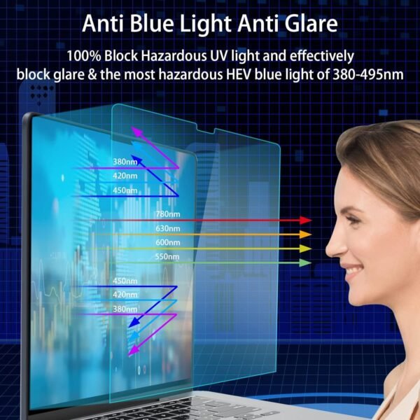 ✅Blue Light Blocking: Macbook Air A3420 A3113 A2681 inch Screen Protector anti blue light laptop screen protector can block blue ray between 380nm to 490nm for wide range HEV protection,Radiation Protection, Anti-static, relieve the fatigue of eyes and help you sleep better.