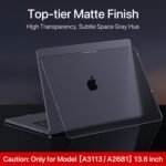 [Top-tier Texture, Same as Bare MacBook]With high-precision micro-etching matte finish, this space gray clear perfectly matches your MacBook and retains the original sleek and minimalist design. Plus, the oil-repellent nano-coating can effectively reduce fingerprints, smudges, and scratches, making it longlasting new and clean.