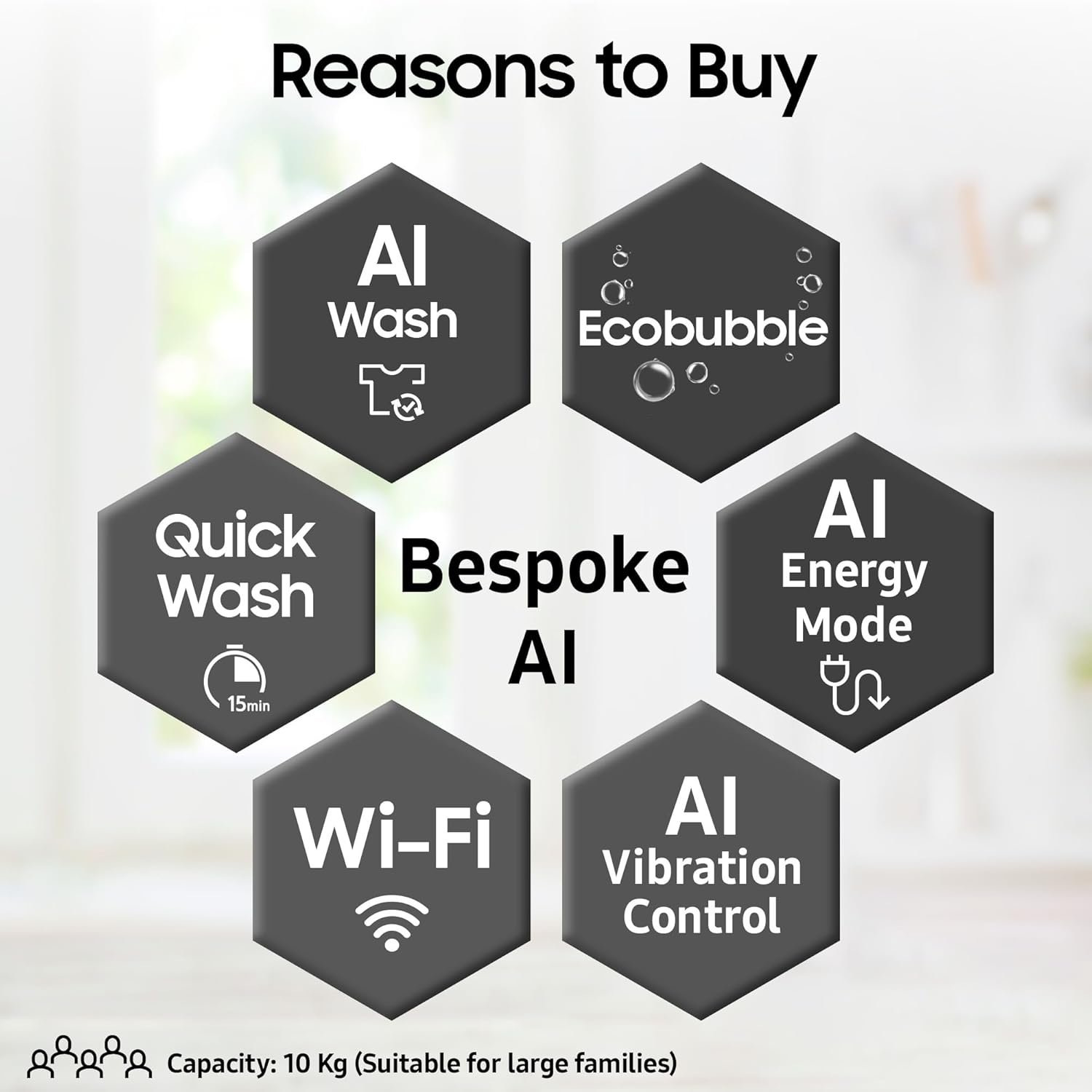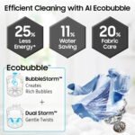 AI Wash – senses the weight and softness of the fabric in a load and enable 25% more fabric care | AI Energy Mode for up to 20% energy savings | AI VRT+ – Vibration Reduction Technology and wash clothes quietly | Ecobubble with DIT gets clothes clean using up to 25% less energy | BubbleStorm | Dual Storm | Auto Restart | Child Lock | Delay End | Drum type: 2nd Diamond | Intensive Wash | Magic Filter | Monsoon | Motor: DIT | Pulsator: PP Dual Storm | Spin Speed: 700 rpm | Smart Control | SmartThings | Smart Check | Soft Closing Door | Water Level: 10 Levels