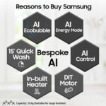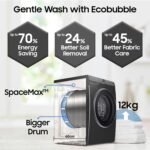 Samsung 12 kg, 5 Star, AI Control, Super Speed, Wi-Fi, Hygiene Steam with Inbuilt Heater, Digital Inverter, Fully-Automatic Front Load Washing Machine (WW12DG6B24ABTL, Black)