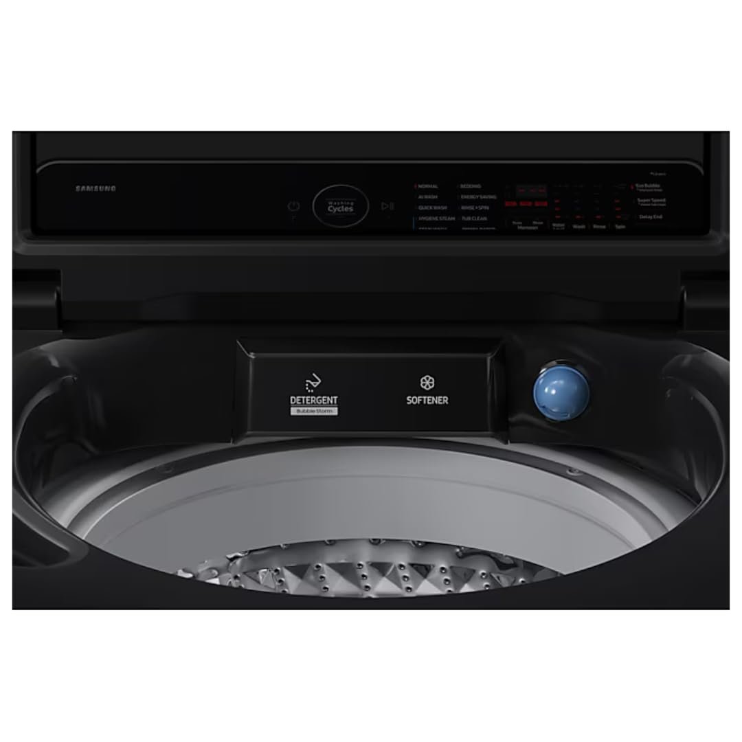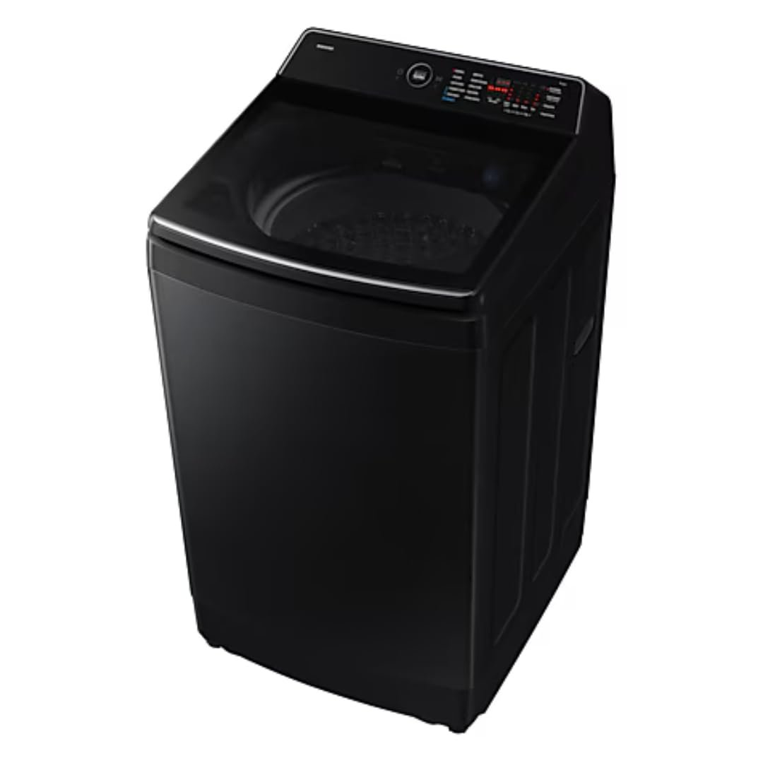 Samsung 12 kg 5 Star AI Wash Top Load Washing Machine with Heater, Eco Bubble, BubbleStorm, Dual Storm Pulsator, Soft Close Lid, Black Caviar (WA80F12B6B, 2025 Model)