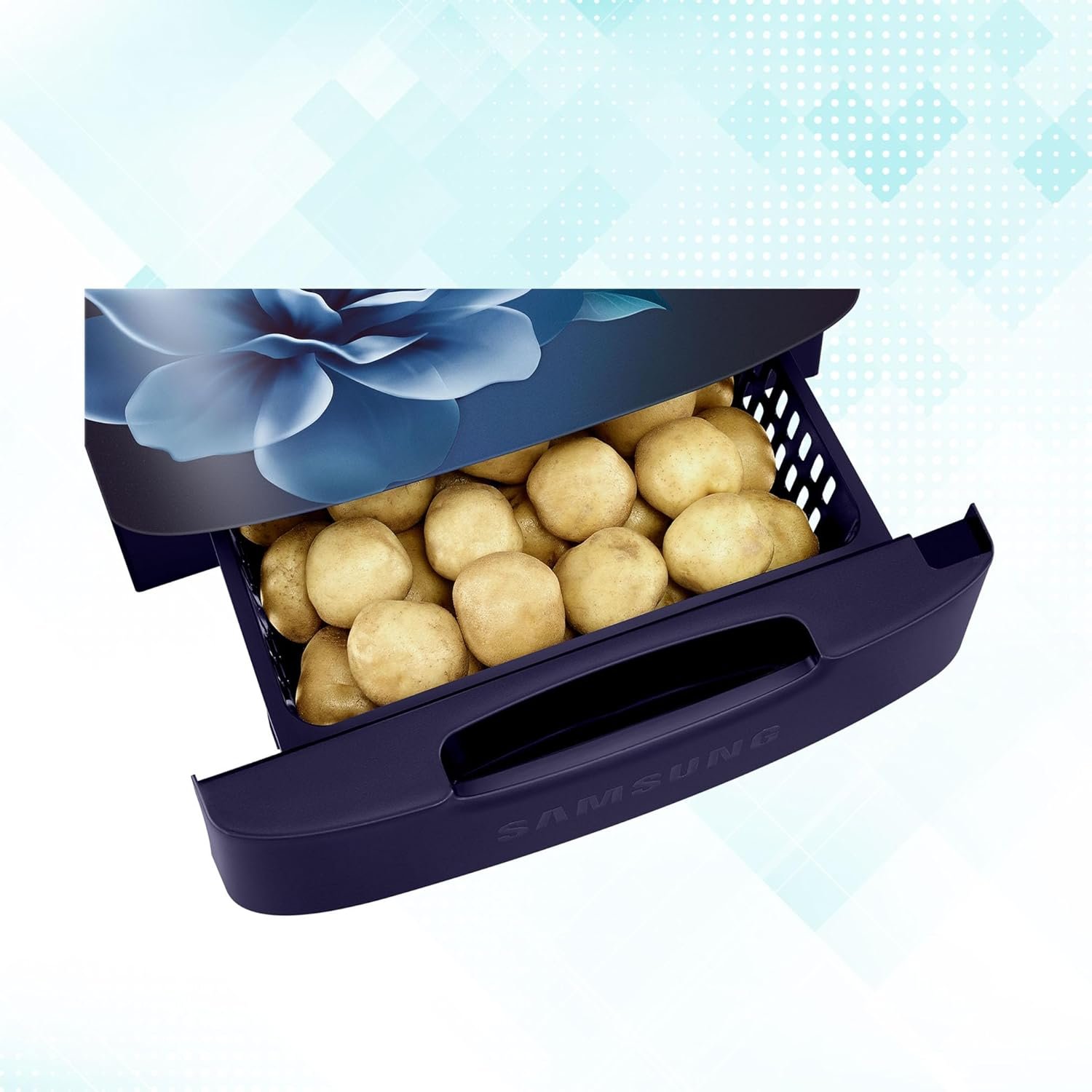 Samsung 223 L, 3 Star, Digital Inverter, Direct-Cool Single Door Refrigerator (RR24D2Z23CU/NL, Camellia Blue, Base Stand Drawer)
