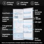 Additional Features : Stabilizer Free Operation (100v – 300v) | Multi Flow | Up to 15 Days of Fresh Food | Recess Handle | Door Alarm | Easy Clean Back | Veg Box | Big Bottle Guard (Deep Door Guard) | LED Light