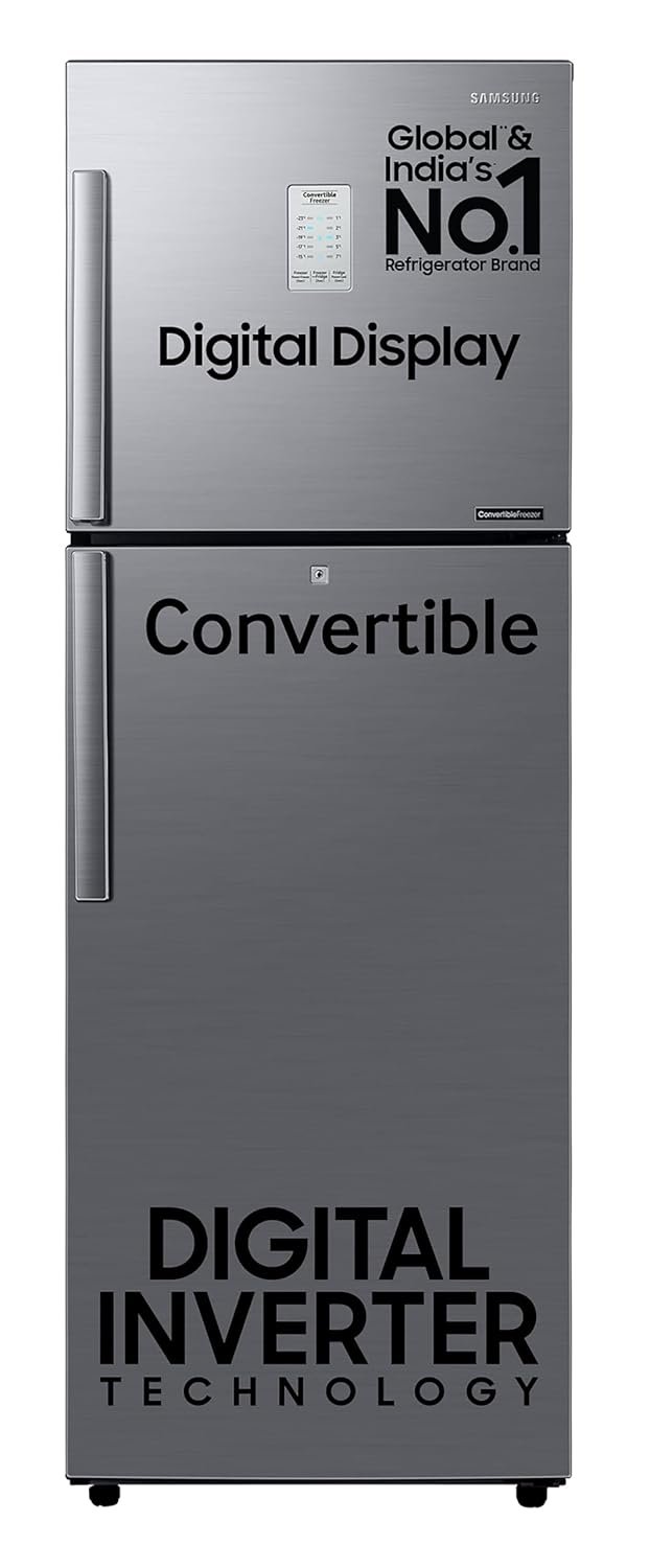 Samsung 236 L, 2 Star, Convertible, Digital Inverter with Display Frost Free Double Door Refrigerator (RT28C3922S9/HL, Silver, Refined Inox)