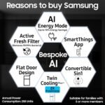 Samsung Exclusive Features : AI Energy Mode | Control with your Phone | SmartThings | Convertible 5-in-1 | Twin Cooling Plus | Active Fresh Filter | Fresh Room | Power Freeze | Power Cool