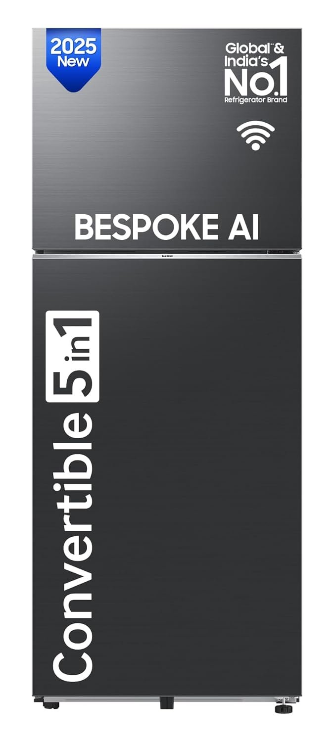 Frost Free Refrigerator with Bespoke AI: Premium Auto Defrost with powerful cooling and long lasting freshness. Powered with AI, get additional 10% Energy Savings with AI Energy Mode. Manage your flexible storage needs with Convertible 5in1 technology : |Normal Mode|Extra Fridge Mode|Seasonal Mode|Vacation Mode|Home Alone Mode