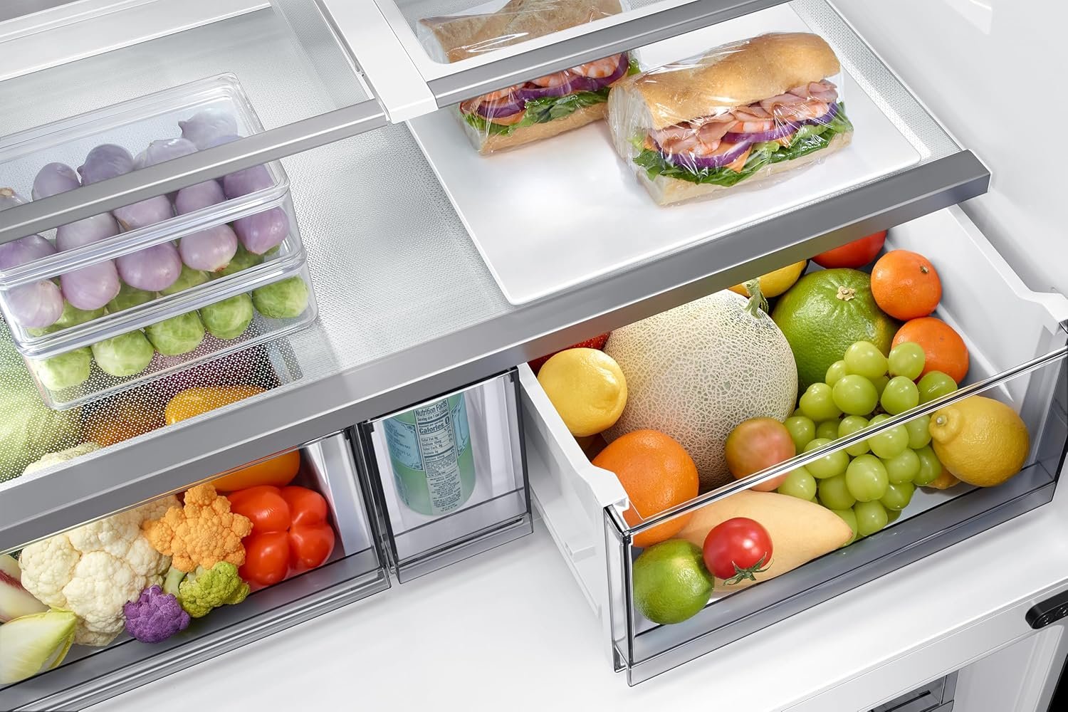 Soft-Close Doors & Premium Flat Design – The sleek, flat front panel with a soft-close door mechanism adds a touch of modern elegance to your kitchen. The ergonomic recessed handles enhance the seamless aesthetic while making it convenient to open and close the refrigerator effortlessly.