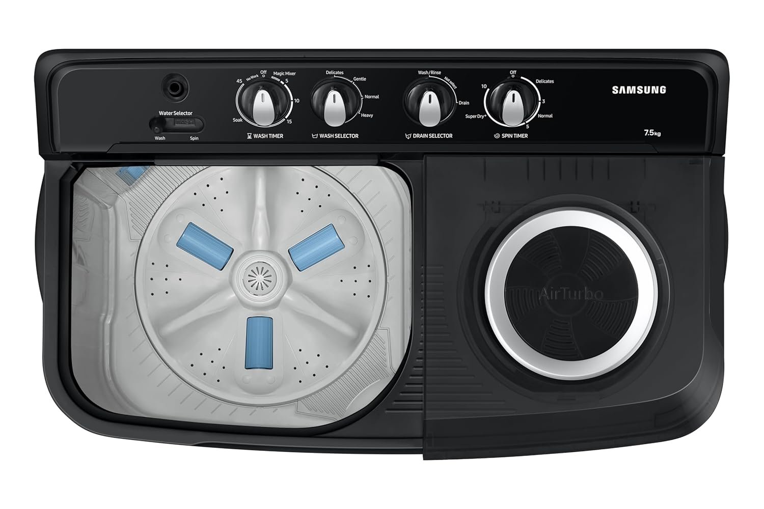 Samsung 7.5 kg, 5 Star, Semi-Automatic Top Load Washing Machine (WT75C3200GG/TL, Air Turbo Drying, Light Gray)