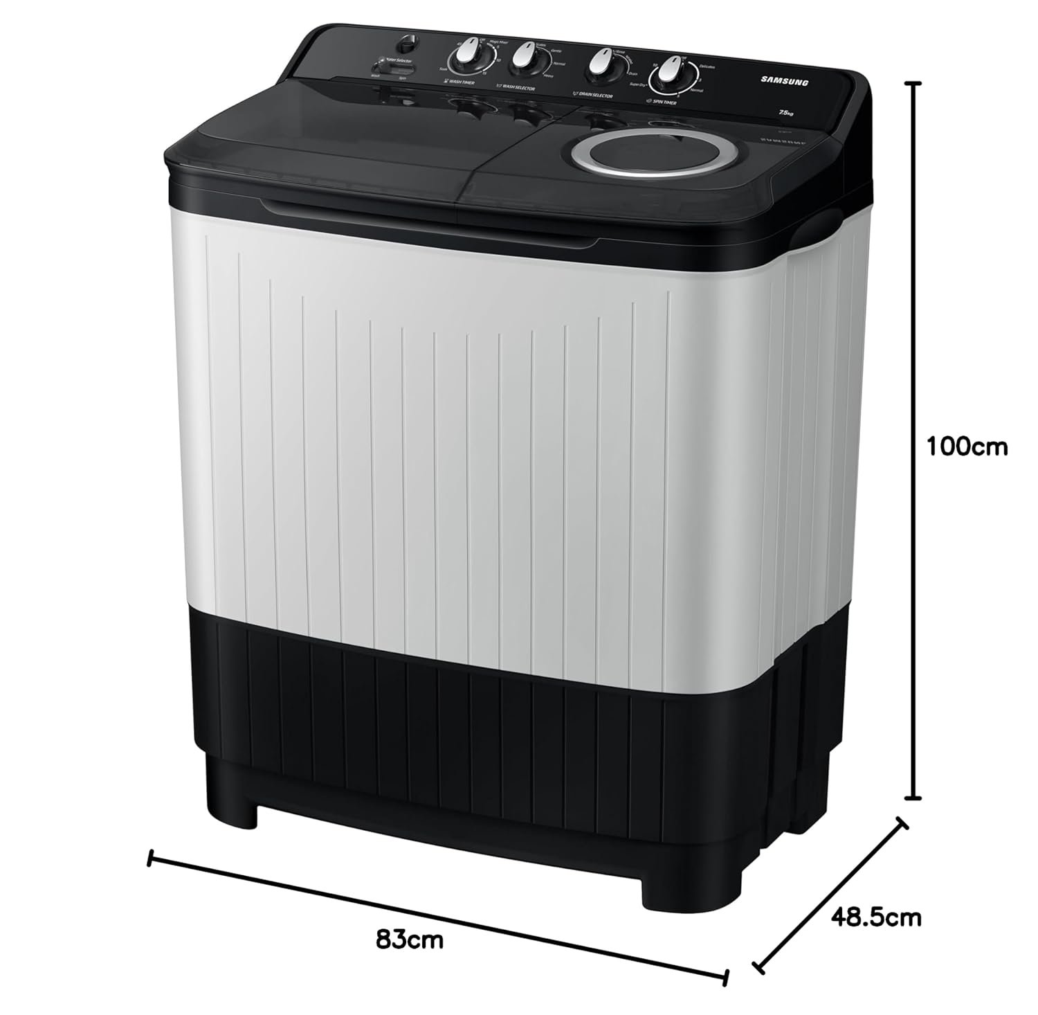 Be the first to review “Samsung 7.5 kg, 5 Star, Semi-Automatic Top Load Washing Machine (WT75C3200GG/TL, Air Turbo Drying, Light Gray)” Cancel reply