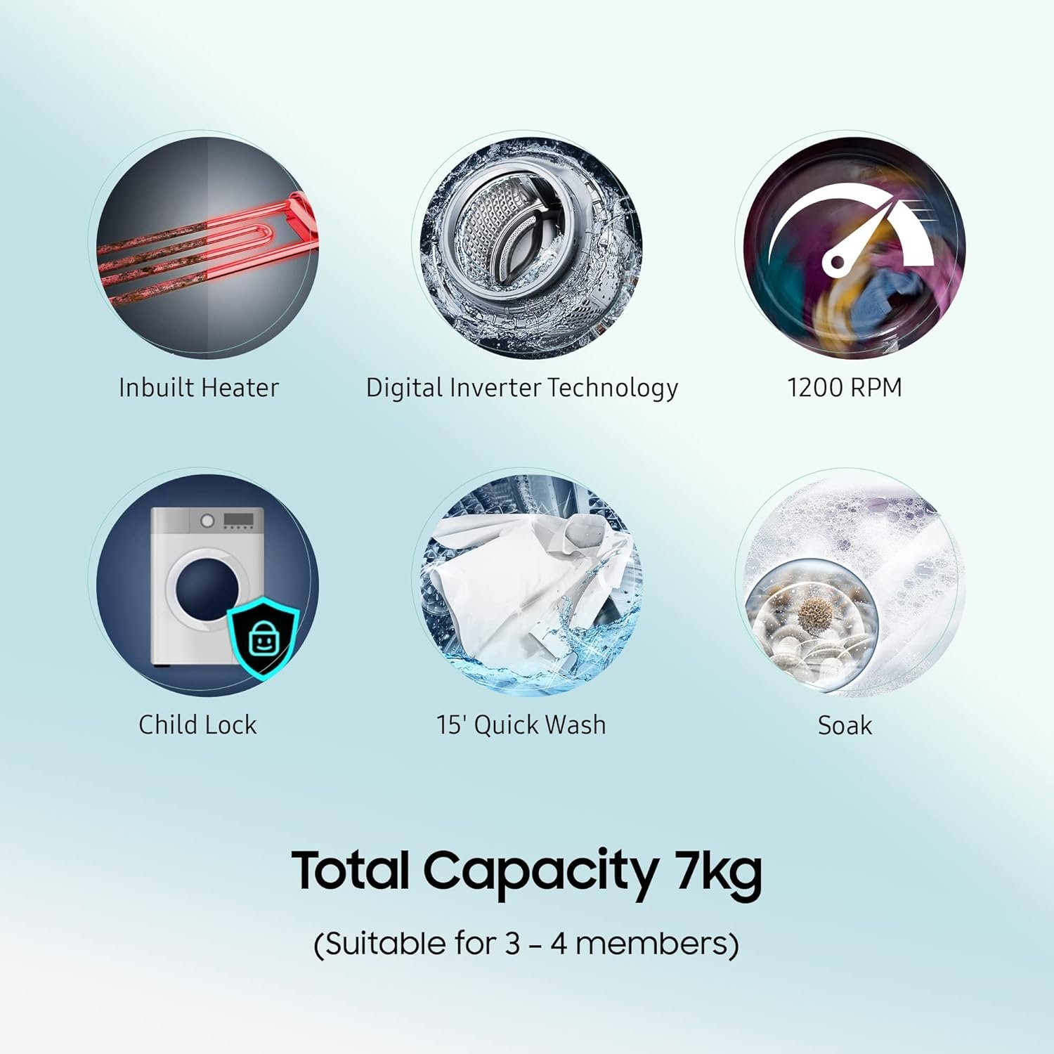 1200 RPM: Higher spin speeds helps in faster wash and drying
