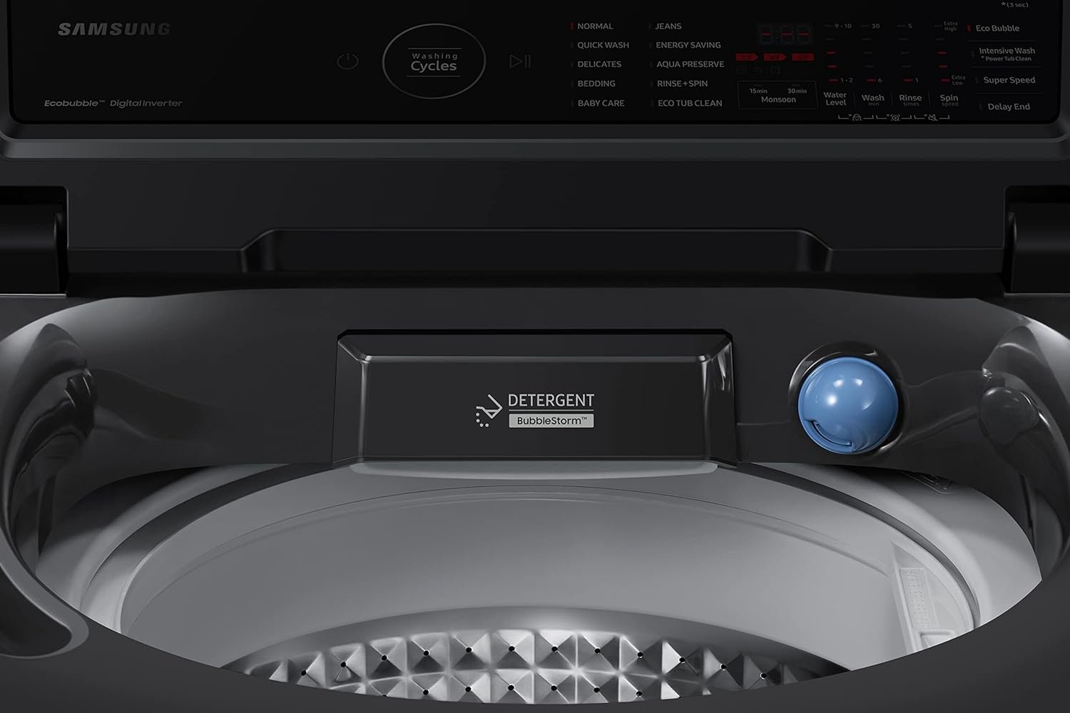 Samsung 7 Kg 5 Star Inverter Fully Automatic Top Loading Washing Machine Appliance (WA70BG4545BDTL Versailles Gray, Ecobubble)