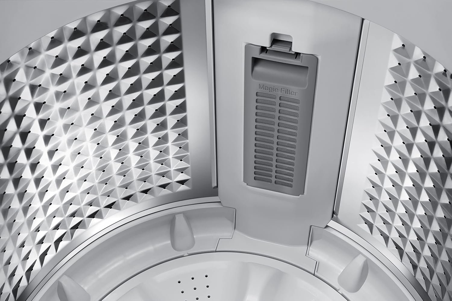 Keep unsightly speckles off your whites and darks, and protect the drainage from getting clogged up. A Magic Filter with a dual mesh, at the front and back, effectively gathers the lint, fluff and particles that come out of your laundry.