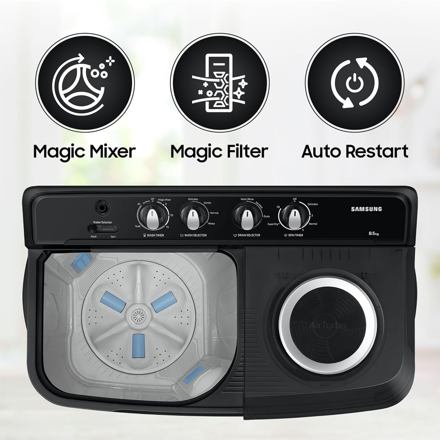 Samsung 8.5 kg, 5 star, Semi-Automatic Top Load Washing Machine (WT85C4200GG/TL, Air Turbo Drying, LIGHT GRAY, 5 Year Warranty on Wash Motor)